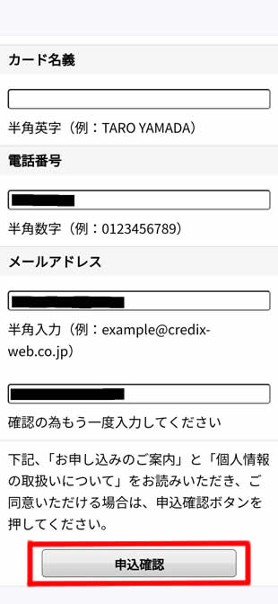 「申し込み確認」をタップします。